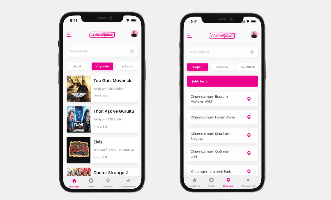 Brand identity directly affects consumer perception and decisions. That’s why the brand’s logo was placed on the main page. The search button was moved lower to encourage users to spend more time browsing. Instead of horizontal scrolling, vertical scrolling was introduced to provide a smoother experience. Movie genres, duration, and IMDb scores were presented with fewer clicks. In the navigation bar, the icons were redesigned for greater convenience.