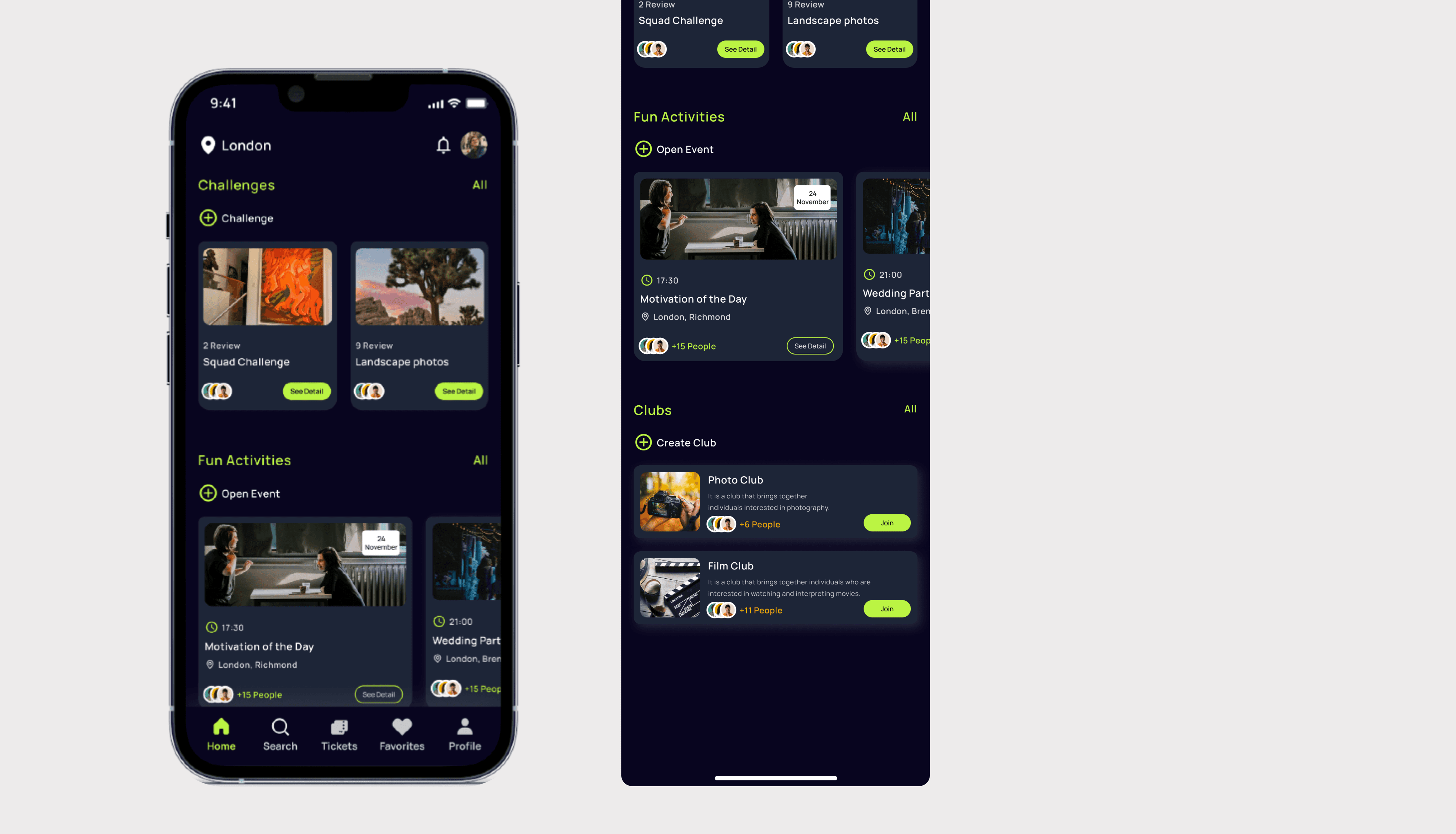 Event Detail Screen provides in-depth information about a selected event, allowing users to explore and evaluate event-specific details.