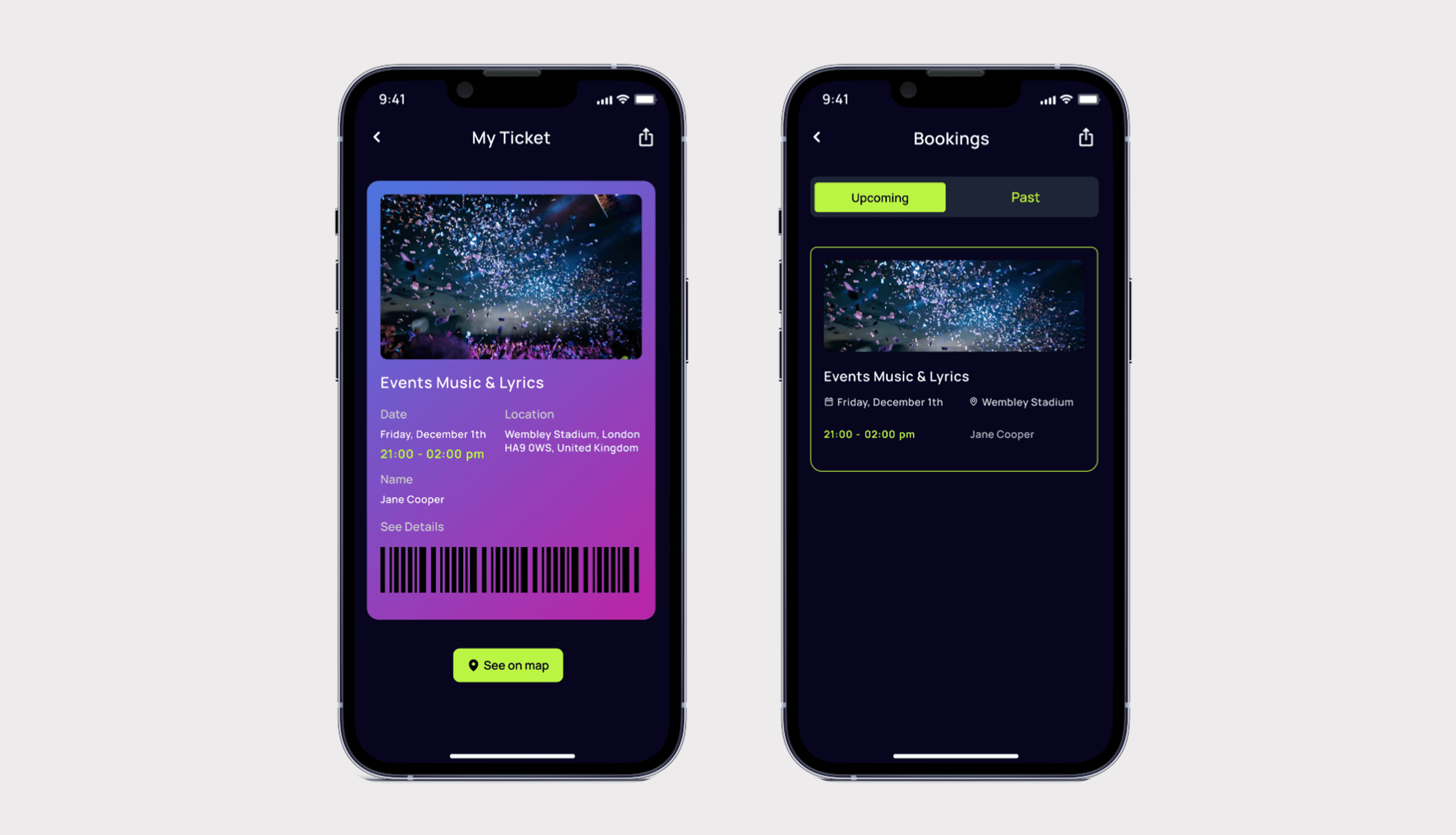 Ticket Detail Screen displays comprehensive information about purchased tickets, including event details and related user-specific data.